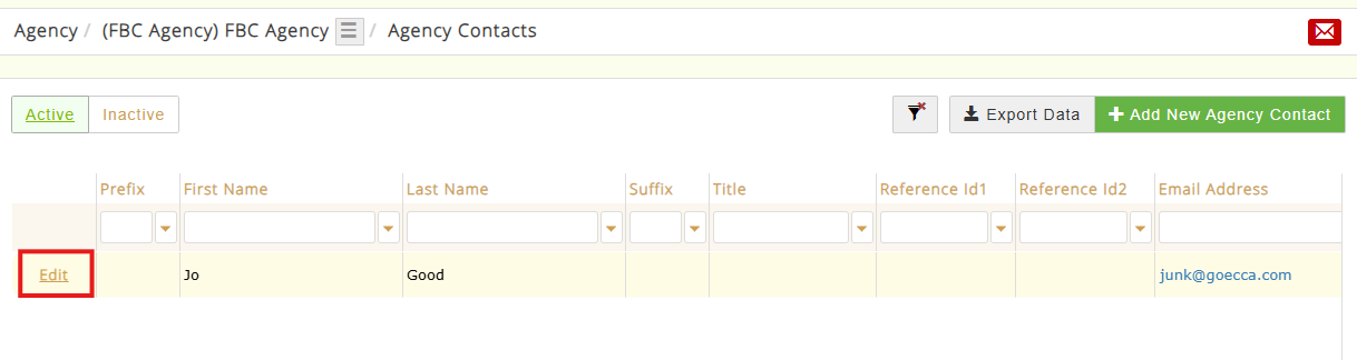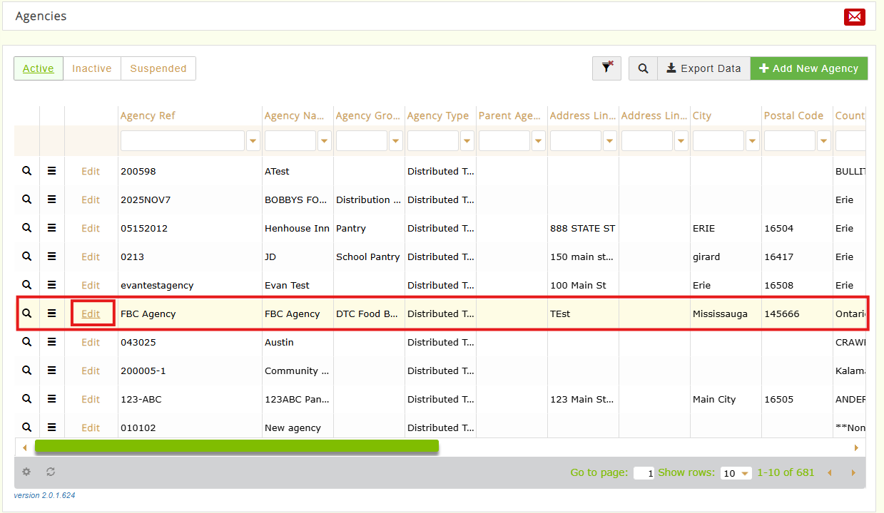 2. Locate the Agency that you'd like to assign a PIN to. Click the Edit button to the left of the Agency Reference.