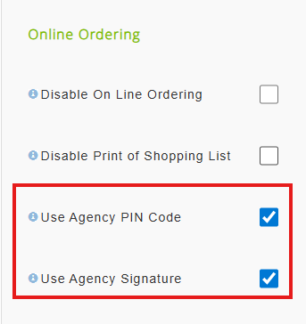2. Click into the PWW tab, look for the Online Ordering section, and check the box to the right of Use Agency PIN Code / Use Agency Signature.