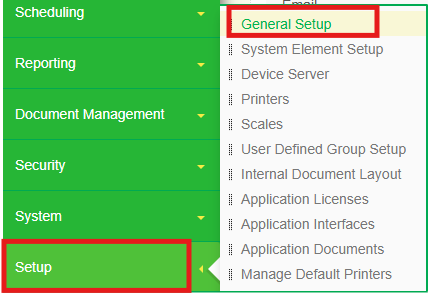 1. From the Primarius navigation menu, select Setup > General Setup.